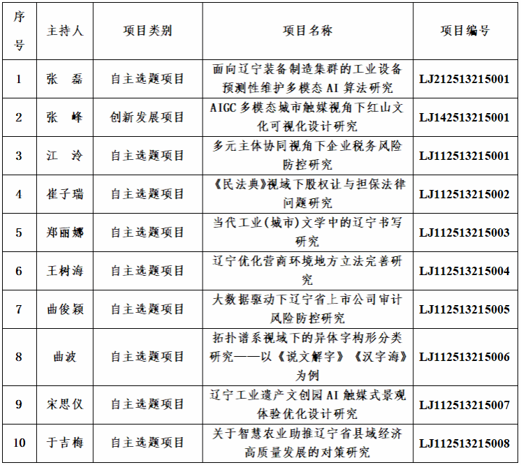 根据辽宁省教育厅发布的《关于公布2025年度高校基本科研项目立项结果的通知》,我校共获批辽宁省教育厅2025年度基本科研项目10项。其中,自主选题项目9项,创新发展项目1项。