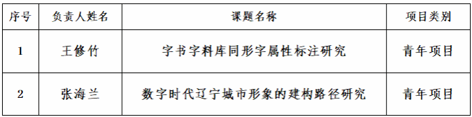 近日,根据《2025年度辽宁省社会科学规划基金项目拟立项名单公示》,我校王修竹老师、张海兰老师的项目分别获批2025年度辽宁省社会科学规划基金项目立项,并获得一万元经费资助。